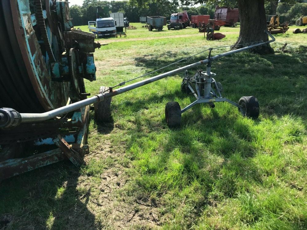 Wright Rain Field Irrigator /sprinkler – approx 20 foot booms – fed by water pressure – has a winch system that pulls the irrigator along while it sprays – there are two of these available – this advert is just for one of these